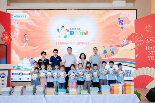 东海县体彩中心此次为孩子们送去了慰问金及乐小星公仔、飞盘等小礼品。此举旨在共同推动教育、体育事业融合发展,帮助儿童在体育锻炼中享受乐趣,增强体质,健全人格,促进幼儿“体、智、德、美、劳”全面发展。