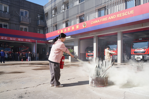 培训结束后,进行了安全应急疏散演练,随着警报响起,大家在消防队员的指挥下,按照预定逃生路线迅速有序离开办公楼,撤离到安全地带,并在消防队员的指导下,学习了灭火器的使用方法。