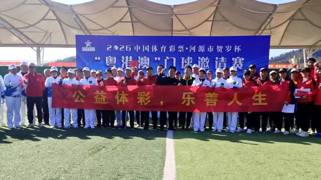 日前,由广东体彩河源分中心支持的2026中国体育彩票·河源市贺岁杯“粤港澳”门球邀请赛,在河源广赋创新学校足球场举行。