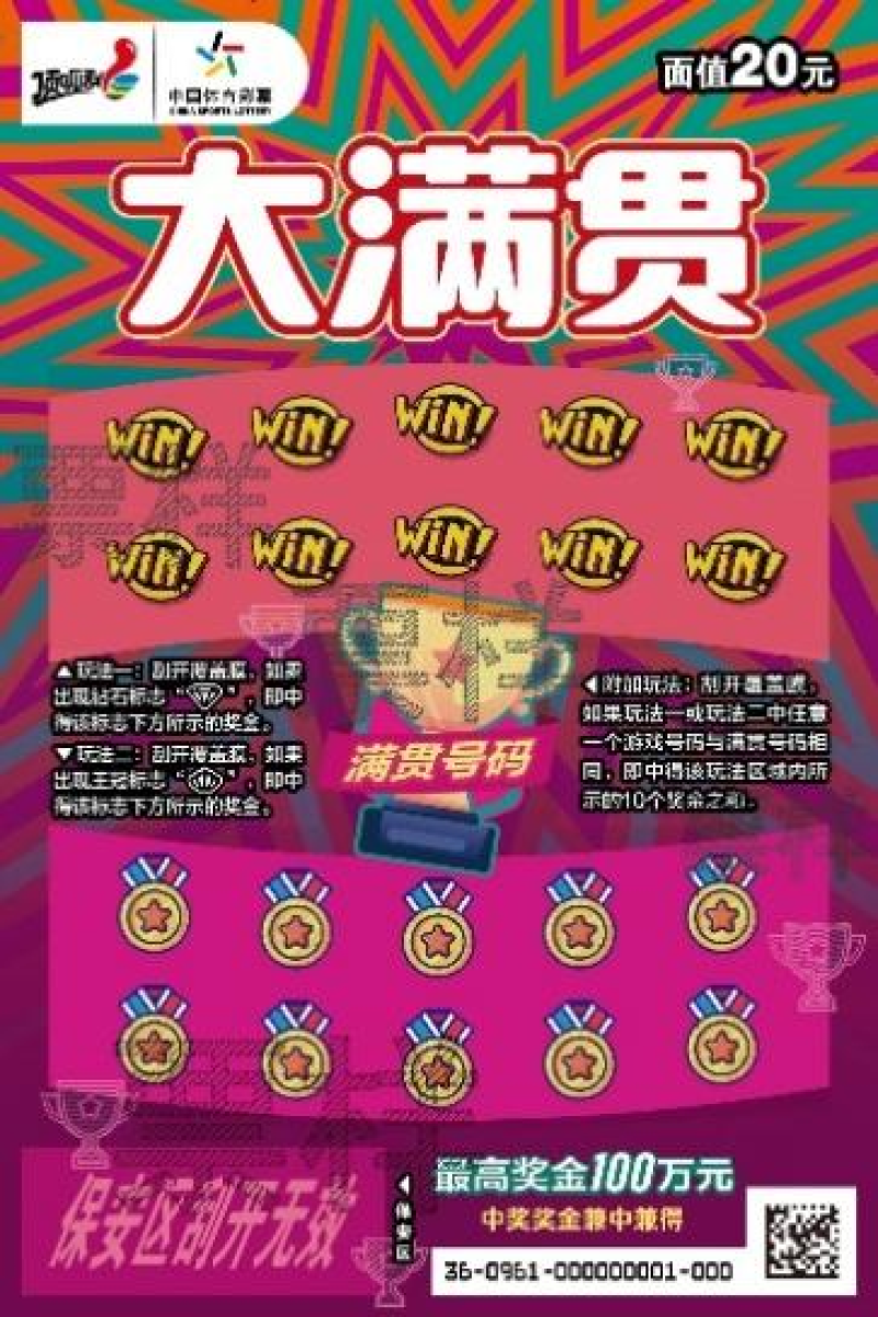 除了为购彩者带来娱乐体验,顶呱刮始终肩负着公益使命。每一张体彩顶呱刮即开票面值金额的20%都会纳入体彩公益金,用于支持教育助学、医疗卫生、社会保障、体育事业等众多公益领域。翻开每张即开票的背面,清晰记录着购彩者为公益事业奉献的爱心,“大满贯”和“好运加满”两款新票的上市,也将为体育事业和社会公益事业注入更多力量。