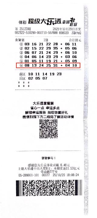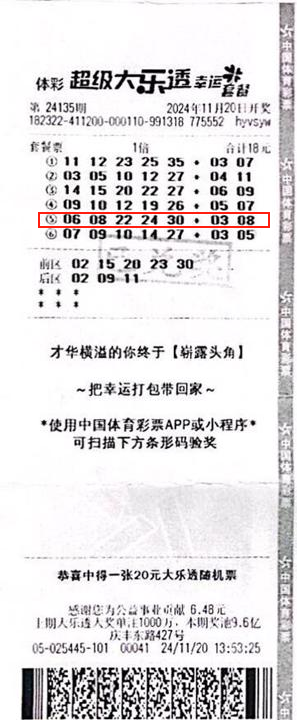 作为大乐透套餐票中价格最亲民的一款,18元“幸运套餐”让购彩者以低投入轻松参与大乐透游戏,同时享受多重号码组合带来的更多期待。正因这份“轻装上阵”的投注体验,18元套餐票已成为许多理性购彩者的选择。事实上,小额投注同样不乏收获幸运大奖的记录。下面,就带大家回顾几期18元套餐票中出大乐透一等奖的幸运记录。