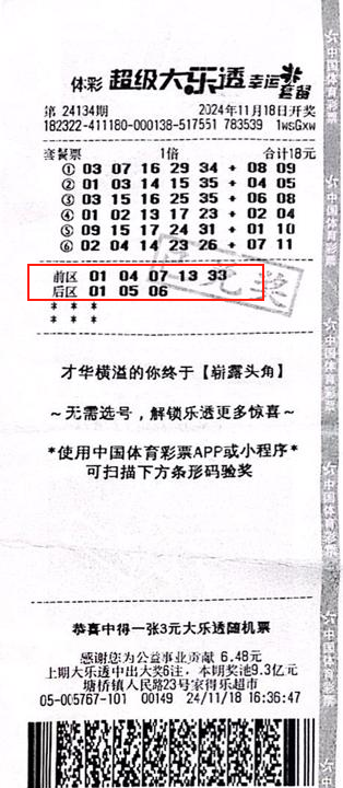 大乐透第24134期,苏州购彩者金先生凭借一张18元套餐票,中得1注一等奖、2注二等奖,总奖金达1022万余元。这位自称“老彩友”的年轻人平日喜欢随机投注大乐透。当期购彩时,网点销售员向他推荐了套餐票活动,他欣然尝试,没想到一出手便收获千万大奖。