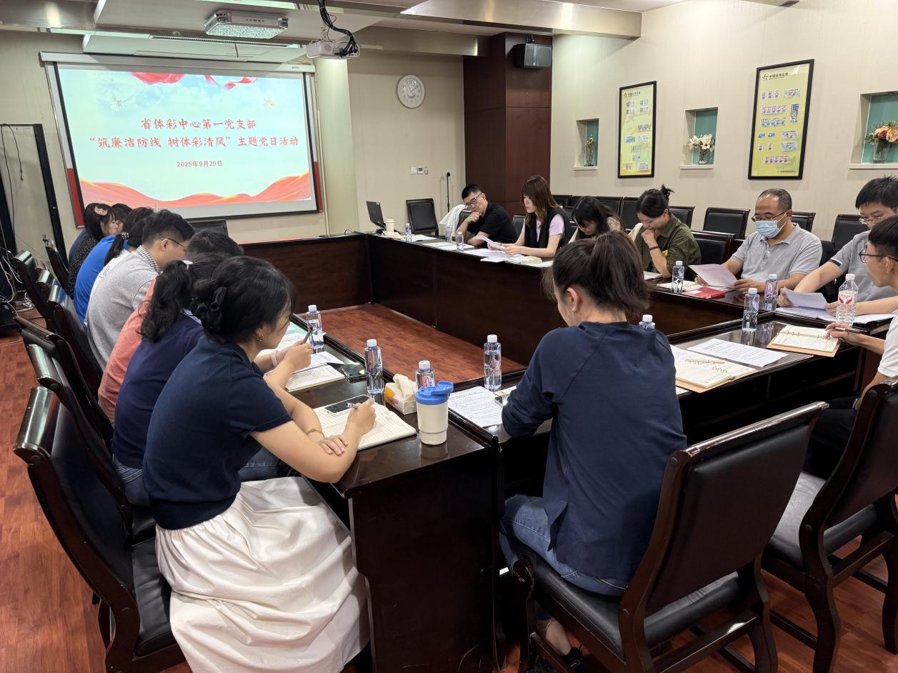 为落实江苏体彩“廉政文化月”工作要求,进一步增强党员廉洁自律意识和拒腐防变能力,9月29日,省体彩中心一支部开展“筑廉洁防线 树体彩清风”主题党日活动。中心班子成员、党总支纪检委员、支部全体党员、青年理论小组成员参会。