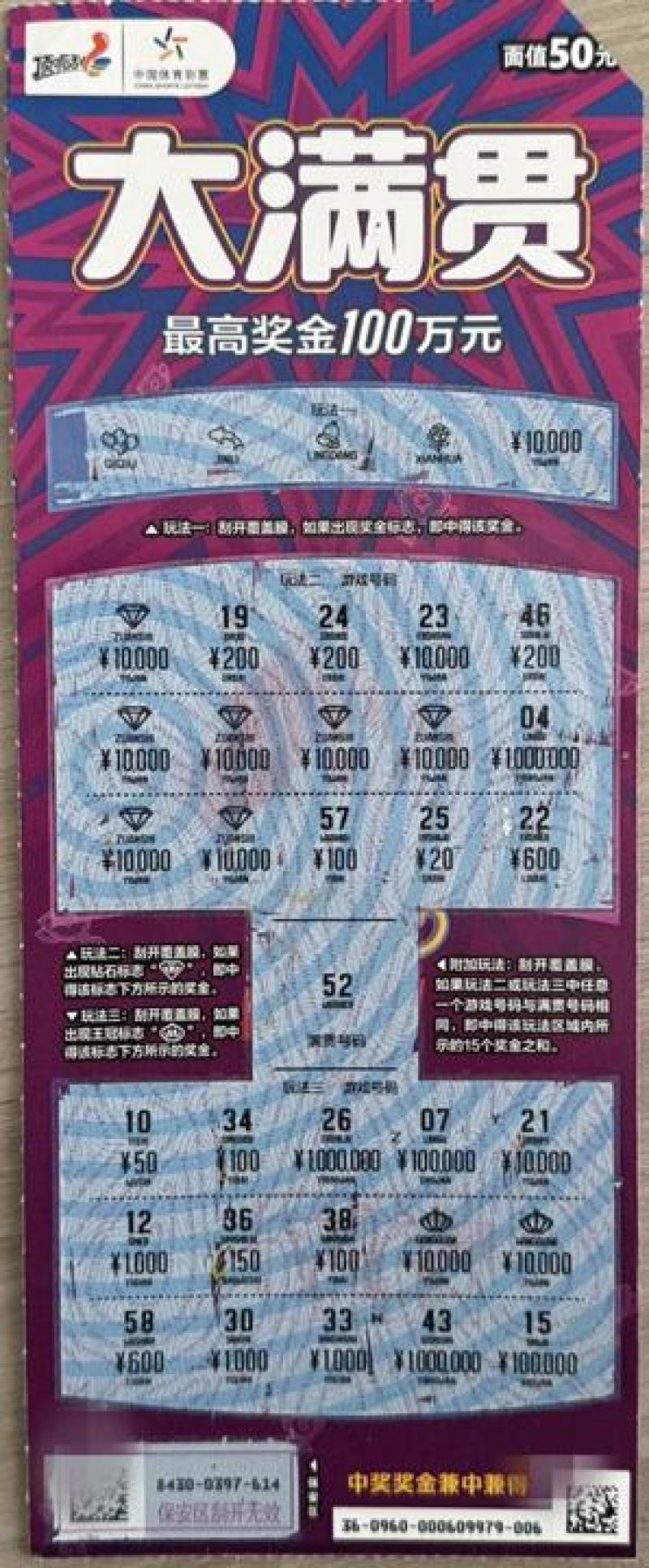 “大满贯”是体育赛事荣誉的象征,也是对好运、惊喜和美好生活的期盼。体彩顶呱刮以此为主题,上市3个面值新款即开票,分别是10元、20元、50元。该票票面设计色彩丰富,主题背景采用了模拟礼花效果的放射状线条,刮开区元素使用了奖杯、奖牌、WIN等与体育赛事荣誉相关的图标,让整个票面充满赛事的激情与活力,传递出积极向上的精神力量,让惊喜满贯、快乐满贯、好运满贯!顶呱刮“大满贯”通过票面的设计语言,将美好的寓意融入其中。同时,“大满贯”的热烈氛围和大气设计,也让票面更有活力、更有意义。