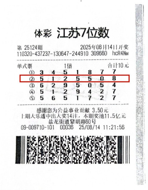 近期,江苏体彩7位数的幸运消息接连不断。先是第25120期开奖,扬州江都区购彩者中得特等奖;相隔数日,第25123期开奖再传捷报,扬州仪征市的购彩者将500万元大奖收入囊中;紧接着第25124期开奖,盐城彩友凭借一张单式票再度延续江苏7位数特等奖的幸运。