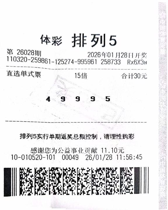 扬州“排列5”一等奖中奖票