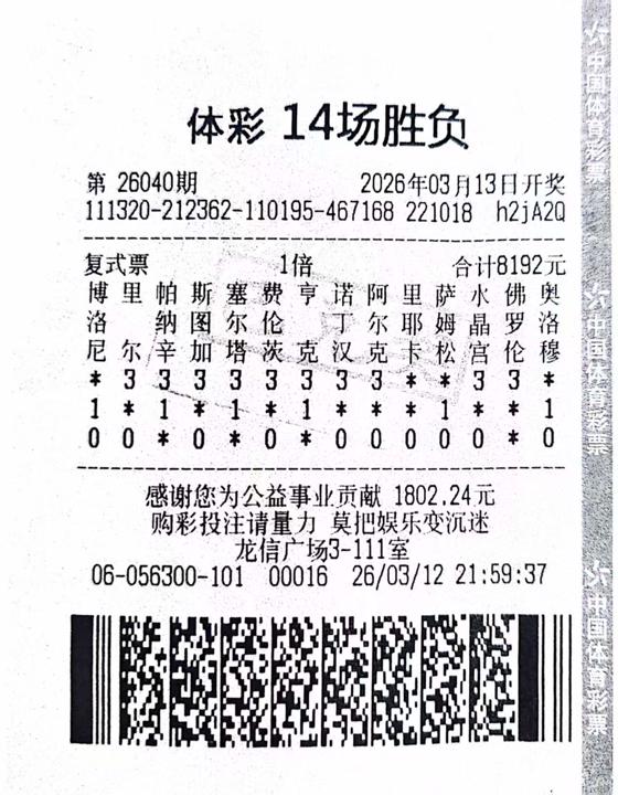 南通传统足彩14场胜负中奖票