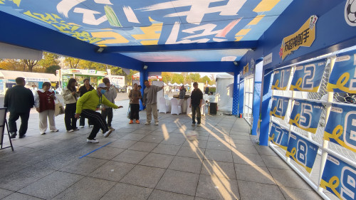 次日,这份公益热情延续至溧阳燕湖公园——2025天目湖马拉松的现场。溧阳体彩紧扣赛事“逐梦天马,尽享品质”的理念,在现场布置公益展示区,通过图文结合的方式,展示了体彩公益金在全民健身设施建设、群众体育保障等领域的贡献。