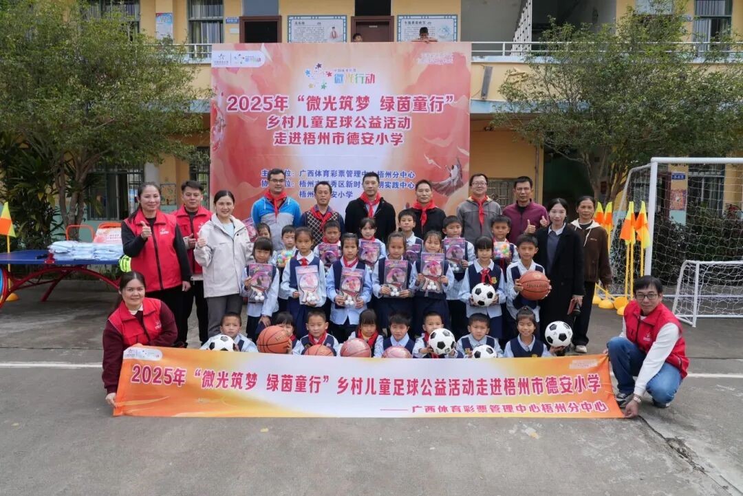 微光汇聚,筑梦同行。2025年12月,由广西体彩梧州分中心主办、梧州市万秀区新时代文明实践中心协办的“微光筑梦 绿茵童行”乡村儿童足球公益活动,在梧州市德安小学温情启幕。梧州市万秀区委宣传部、梧州市万秀区教师发展中心、夏郢镇教育党委、夏郢中心小学等单位相关人员,以及梧州体彩实体店的爱心代销者们齐聚校园,共同出席了捐赠仪式,见证了这份爱心的传递。这是一场传递爱心的公益盛会,更是一次为乡村孩童运动梦想赋能的暖心之约。