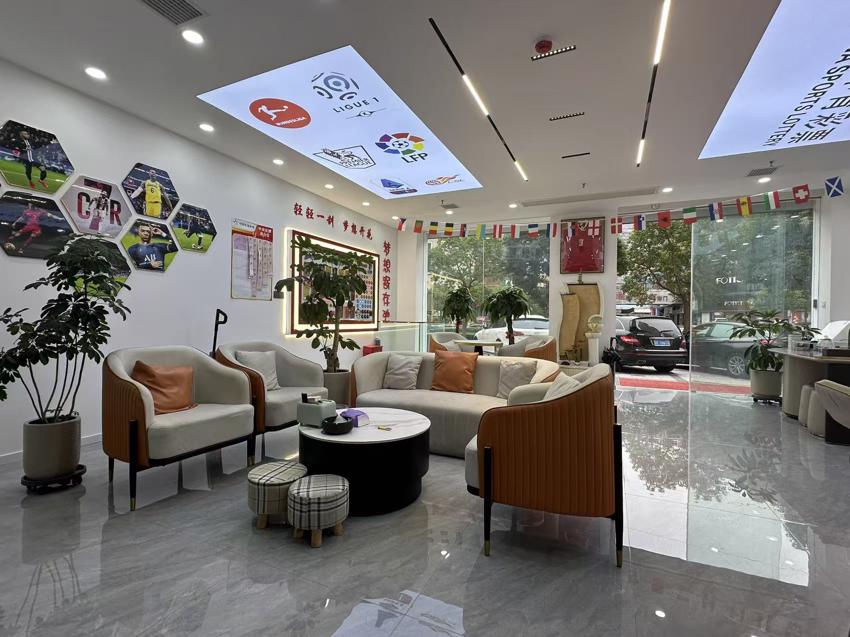 走进店里,仿佛踏入球迷专属世界。天花板悬挂着各国国旗串旗,五大联赛标识灯箱贯穿全场,足球明星的签名球衣、六边形球星装饰墙等足球元素让人目不暇接,瞬间点燃体育迷的热情。超大高清电视实时转播足球赛事,搭配舒适的沙发卡座和休闲桌椅,无论是约上三两球友一同看球,还是独自享受比赛的激情,都能在这里找到上佳的观赛体验。