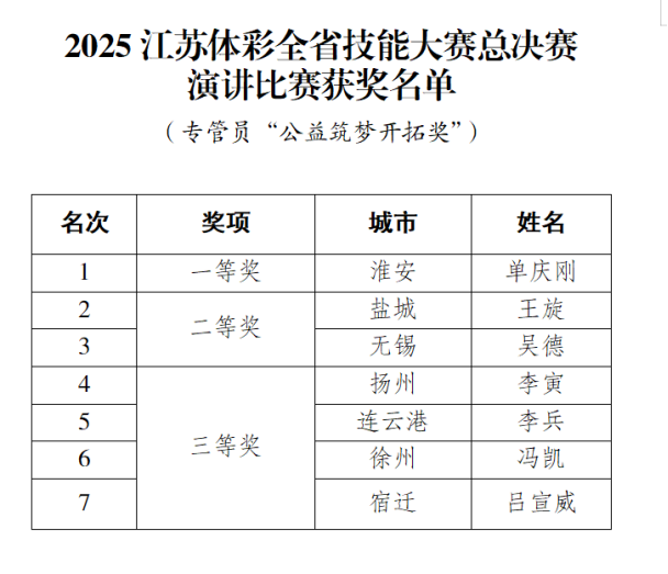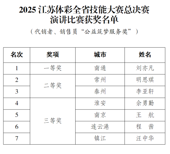 2025江苏体彩全省技能大赛历时6个月,历经层层选拔,至11月4日圆满落幕。本次比赛为广大专管员、代销者、销售员提供了展示、交流与学习平台,通过“以赛代训、以赛促学”方式,在全省体彩系统凝聚共识、激发干劲。未来,江苏体彩将持续完善人才培养机制,强化队伍专业化建设,为体彩事业高质量发展注入更多动能,为体育强省建设贡献更多体彩力量。