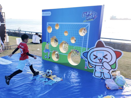 活动现场的游戏互动区成为了欢乐的海洋,不同年龄段的人群都在这里找到了属于自己的乐趣。“跳出精彩”摸高挑战区前,参与者们纷纷摩拳擦掌,一次次奋力跃起,挑战自己的极限高度。而“脑动出彩”游戏区则成为了孩子们的欢乐天地,他们全神贯注地投入到游戏中。有的孩子精准地将沙包投入洞中,有的则灵活地控制足球,使其顺利滚进洞中。他们脸上洋溢着的灿烂笑容,成为了活动现场最动人的风景。