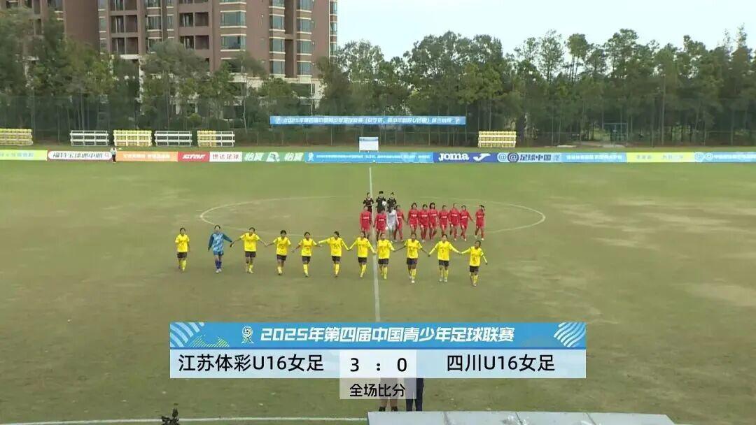 2025年第四届中国青少年足球联赛(女子初、高中年龄段U16组)第三阶段比赛于11月27日在福建省漳州欢乐岛足球基地落下帷幕,江苏体彩U16女足最终以3:0战胜四川U16女足斩获冠军。