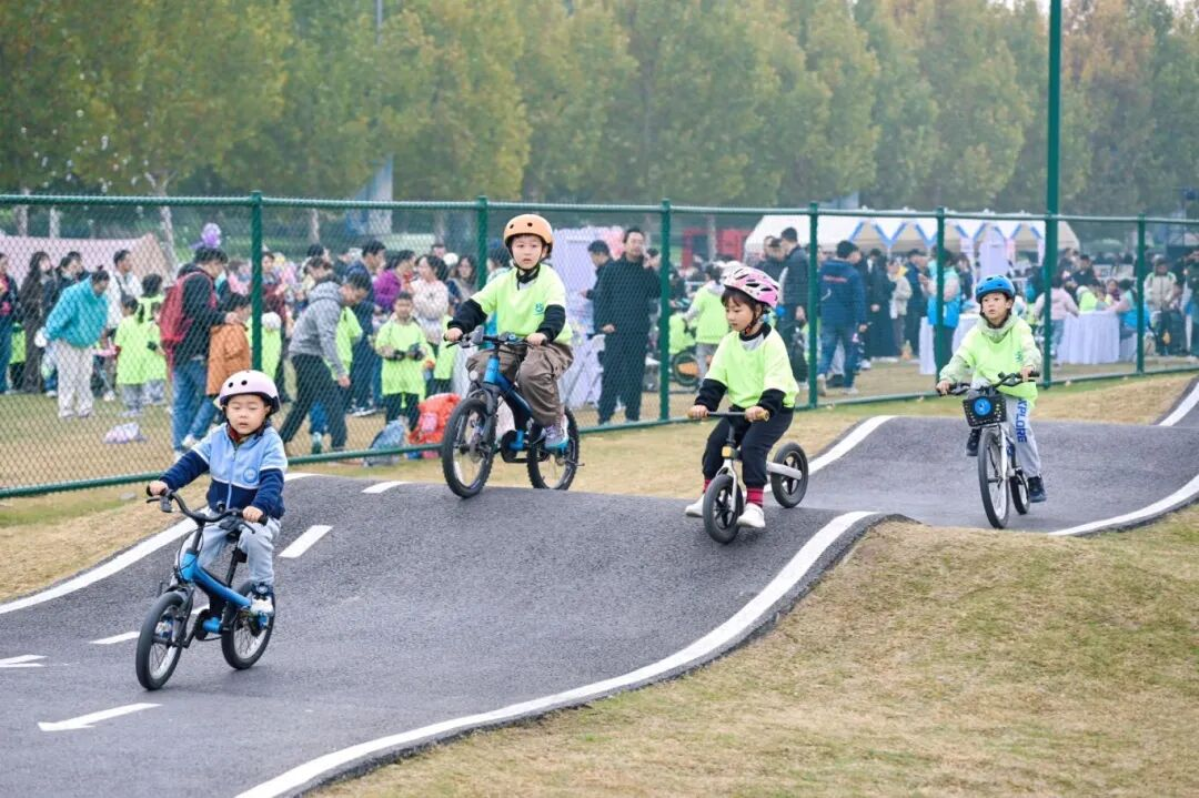 户外运动挑战赛、趣味田径赛、儿童泵道PK赛如火如荼地开展,巧妙融合趣味性与竞技性的骑行、篮球、足球、飞盘、跳绳等运动项目,让亲子家庭尽情享受户外运动的乐趣。奥运冠军惠若琪与孩子们亲切互动,近距离展示体育冠军风采,现场气氛热烈欢快。