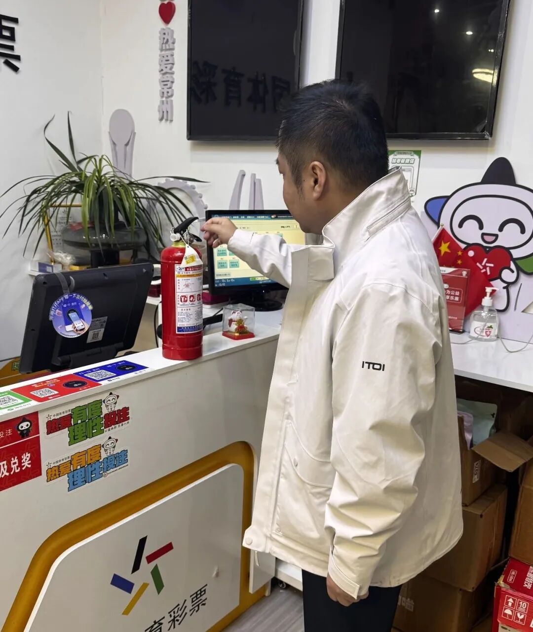 检查组重点查看了各站点消防设施配备是否齐全有效、灭火器是否在有效期内、疏散通道是否畅通无阻;详细检查店内电气线路布局、开关插座使用规范,严防私拉乱接、线路老化等安全隐患;同步核查终端机、电子显示屏等设备运行状态及监控设备覆盖情况,提醒站点负责人做好设备日常巡检与维护,筑牢安全防线。针对部分站点存在的消防器材摆放不规范、用电细节不达标等问题,检查组当场指出并提出整改建议,要求立行立改,坚决杜绝安全风险。