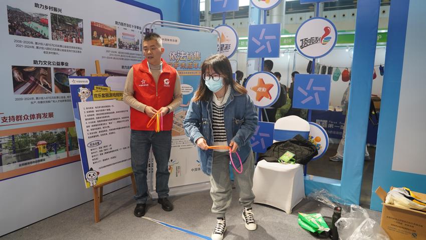 走进嘉年华现场,远远就能看到“安心购彩守护行动”主题门头格外醒目,手持盾牌的“乐小星卫士”吸引众多跑者驻足合影。“买彩票的钱去哪了?”的展板前,党员先锋队的队员们正为市民与跑者讲解公益金使用情况。旁边的“如何识别正规体彩顶呱刮”小课堂也由队员们轮流值守,手把手教大家辨别真伪。